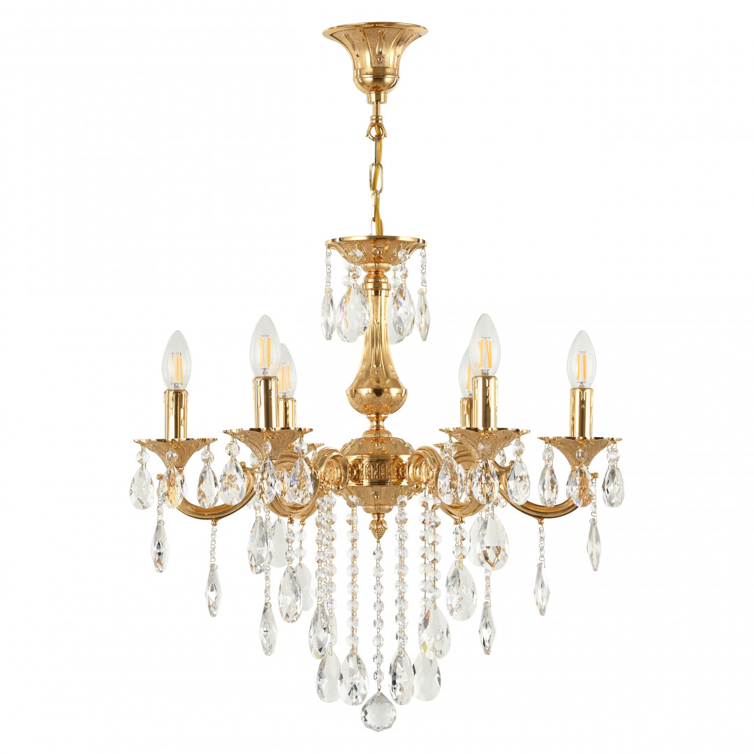 Светильник Bohemia Ivele Crystal AL77101/6/175 B G выполнен из материалов: хрусталь и Металл. Арматура цвета Золото. Хрустальный светильник Богемия рассчитан на 6 ламп. Металлические части окрашены в благородный цвет Золото. К прибору подойдут лампы накаливания с цоколем E14, мы рекомендуем использовать филоментные лампочки. Наполняя помещение теплым свечением, этот светильник создан, чтобы дарить уют в гостиной, спальне или зале.