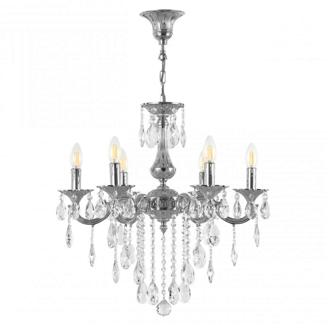Светильник Bohemia Ivele Crystal AL77101/6/175 B Ni выполнен из материалов: хрусталь и Металл. Арматура цвета Никель. Хрустальный светильник Богемия рассчитан на 6 ламп. Металлические части окрашены в благородный цвет Никель. К прибору подойдут лампы накаливания с цоколем E14, мы рекомендуем использовать филоментные лампочки. Наполняя помещение теплым свечением, этот светильник создан, чтобы дарить уют в гостиной, спальне или зале.